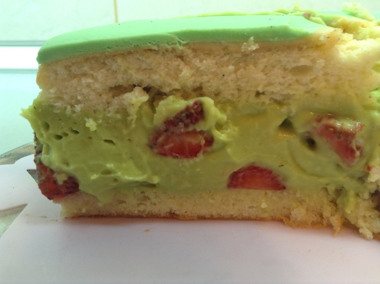 Симпатично. Это от фисташковой пасты крем такой зелененький?