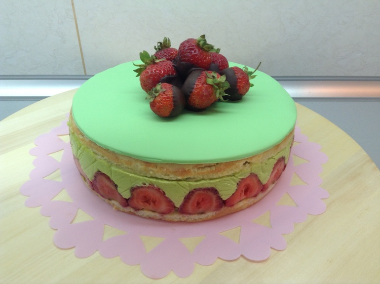 Фрезье: миндальные бисквиты, фисташковый заварной крем "муслин", клубника, 1700г.
