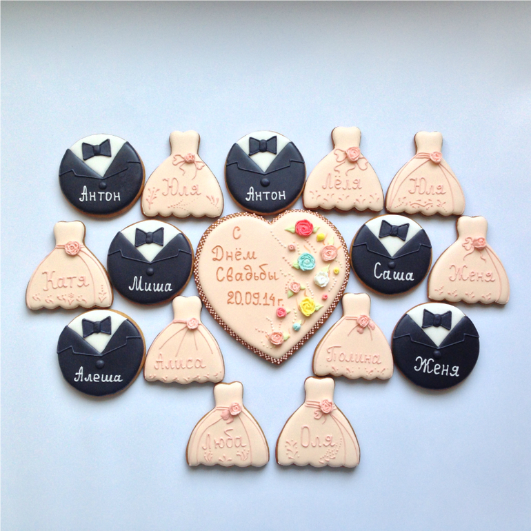 Печенье,пирожные,конфеты, выпечкаРассадочные имбирные карточки для гостей и пряники для родителей и молодоженам)))