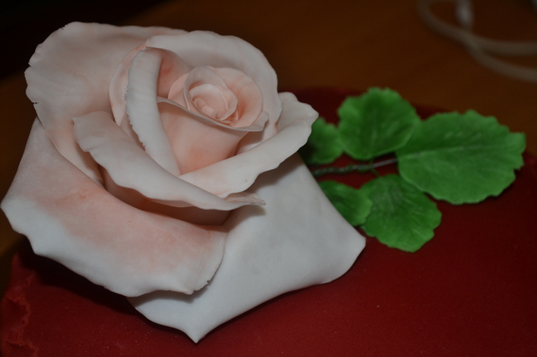 Я две недели страдала от безделья и ломки по тортикам. Но подвернулся чудесный случай выразить свою благодарность соседке, которая отправляет наше семейство за бугор, на отдых и обеспечивает моих мальчишек замечательными игрушками, оставшимися от внуков. Энтузиазму, с которым я начала лепить розу можно только позавидовать. А с моим нулевым ничтожным опытом в лепке, я еще и довольна осталась. Но..вытащенный из "колодца" панчо испортил всё настроение. Сметана растеклась - тогда как раньше было нормально. Начала ровнять - все расплывается. А худо-бедно обработала, так торт стал не "барабаном", а "бочонком" приплюснутым. В общем - извращаться и класть гигантский слой МПК я не стала, дабы вкус не портить.