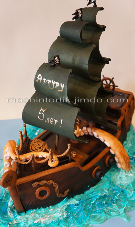 Вот здорово он покрашен у тебя!!!! это меренга? а еще, паруса из какой мастики делала, из принцессы? очень здорово смотрятся, в черном цвете!!!
