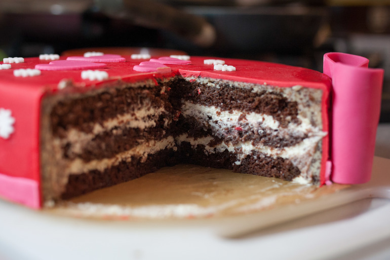 Хотела попробовать новые коржи и крем, и всё таки решила остатки мастики тоже приспособить, а то что лежать без дела))