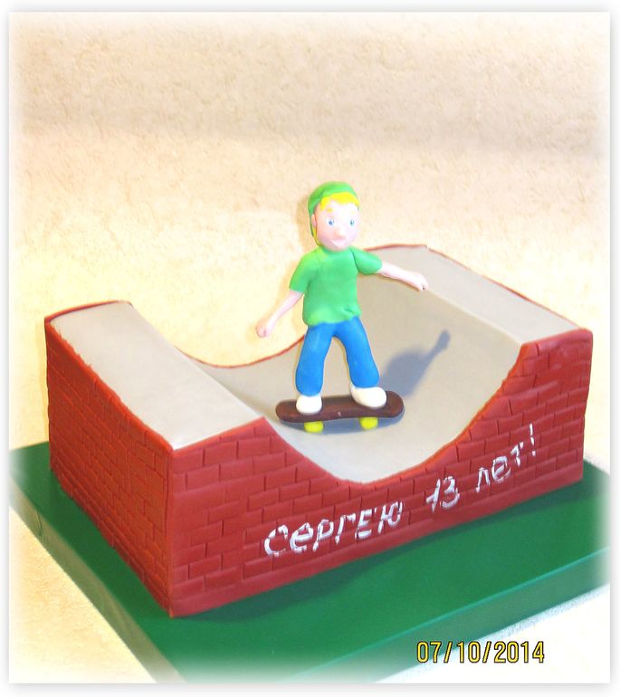 Спасибо) идея собирательная, есть похожие тортики в Интернете)) у мальчика проволочный каркас, через скейт и торт в подложку, иначе бы не держалась конструкция)