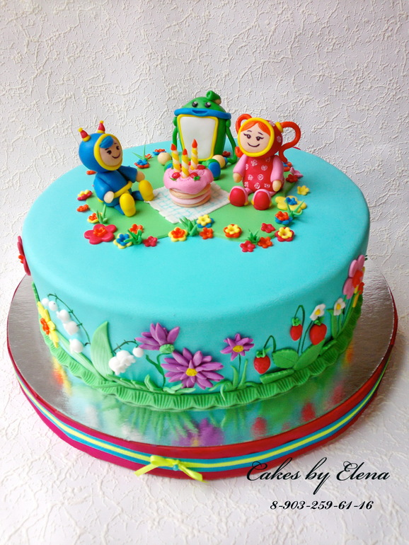Торты детскиеПочти 4 кило получился... Бисквит, творожно-сливочное суфле, клубничное пюре. Мульт не смотрела, надо скачать на досуге и с детками посмотреть, но лепить их понравилось)