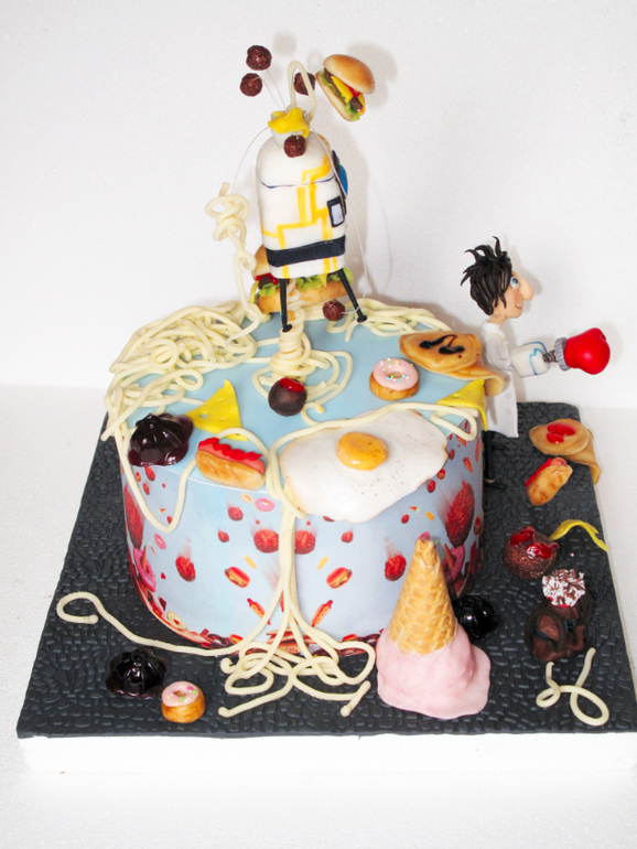 2,5 кило (без 90 гр) вишневого безумия: бисквит шифоновый на вишневом соке, вишневый йогурт, вишневое желе. вся еда шокодадная ( кроме желе и летающих фрикаделек, желе из остатков желе из начинки,фрикаделики из... Несквика,подошли идеально) фигурки из принцессы. торт высотой 10 см- соответственно размер фигурок вот такой. маленький)
