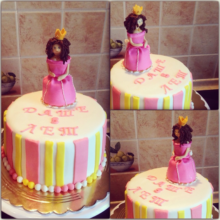 Торты детскиеВот такой вышел торт, принцесса, вышла пышногрудой и плечистой, но имениннице понравилось, как докладывают источники, голову с плеч ей сразу ... Скушали :))