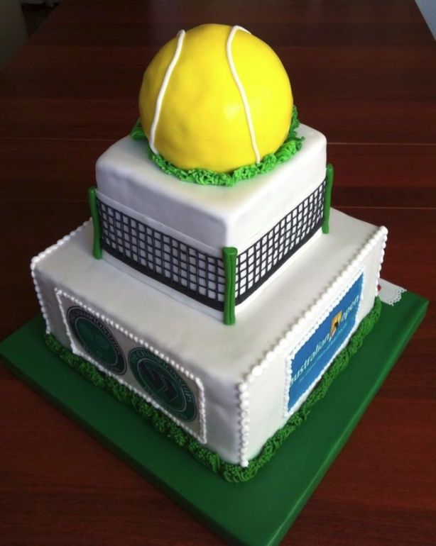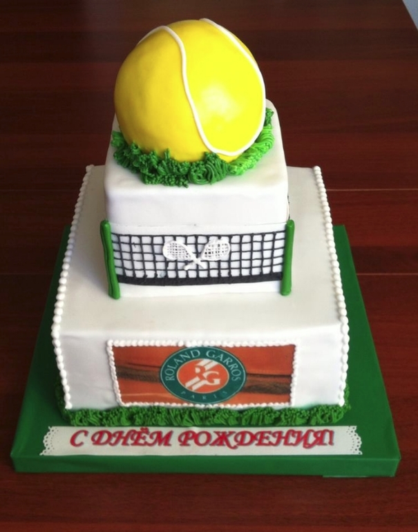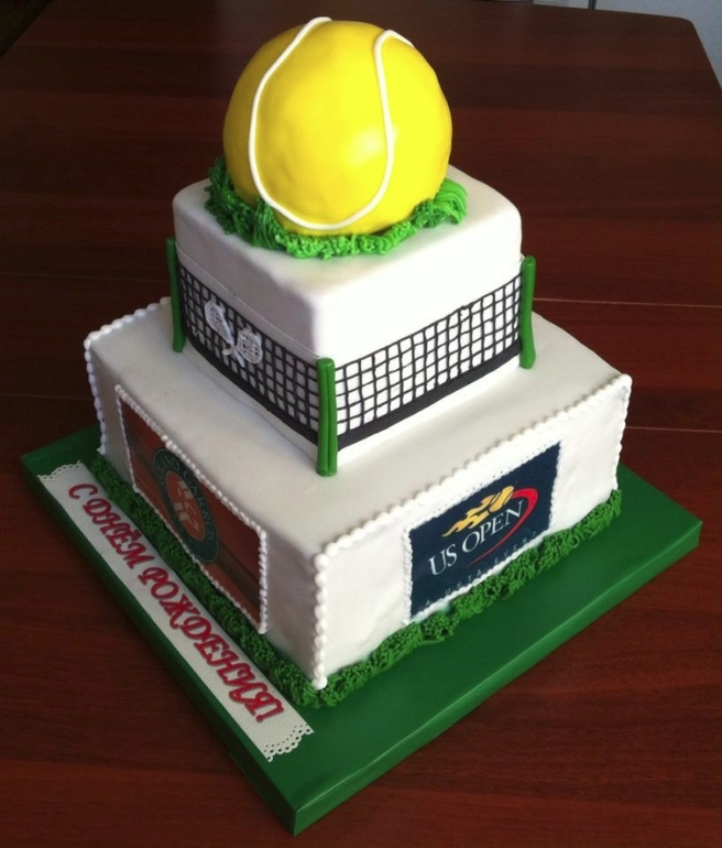 Торты тематическиеИ такой вот торт очень быстро был сделан в подарок. Идея в том, что с каждой из четырех сторон расположена эмблема одного из турниров Большого Шлема.