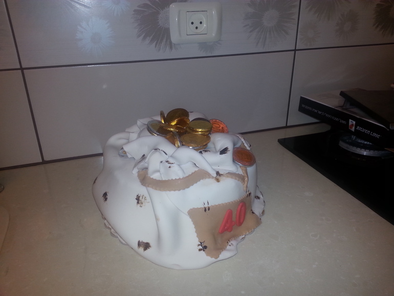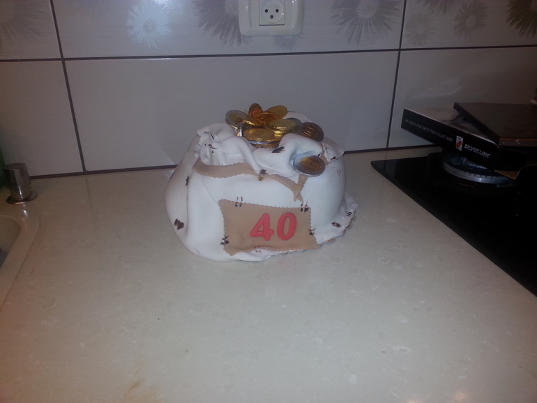 Можно я со своими замечаниями влезу?1. Ваш мешочек больше походит на кузовок из бересты, для натуральности лучше придать цвет мешковины.2. Слишком он у вас гладкий. Пройдитесь по раскатанной мастике ситом или фактурным ковриком. 3. Внизу края под коржи подгибайте, а то не мешок выходит а простынкой накрыто.4. Складки старайтесь распределять равномерно по мешку. Вы попробуйте в жизни насыпать мелочь в мешочек, и увидите как он ляжет.Ну и чтобы не быть голословной, покажу свой вариант: