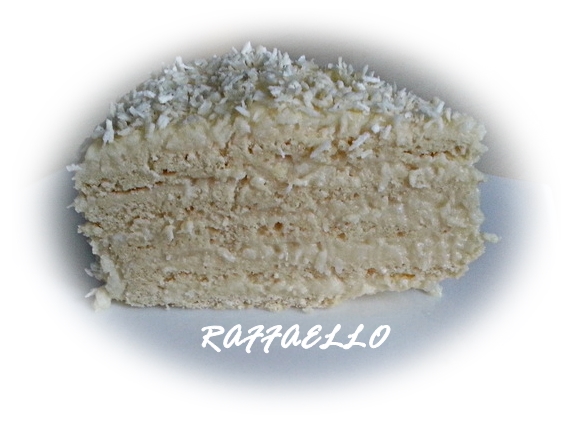 Классный тортик! Обожаю рафаэлло, а тортик такой ни когда не пробовала. Сегодня как раз искала рецепт. Он хоть чуть чуть похож на конфеты?