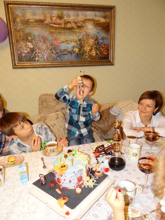 Сын аж растирался когда мы вынесли торт..."Я не могу поверить свои щекам!" сказал он.