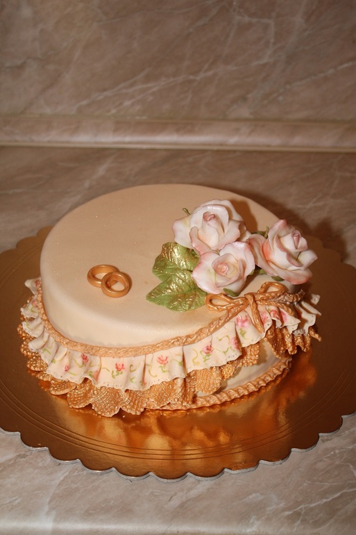 Ален, спасиб!!))) отрезаю полосочку, волню край немного ,сухой краской рисую пятнышки. затем гелевой поярче прорисовыю цветуечки... стебельки и все . что хошь..потом прикрепляю к тортику..