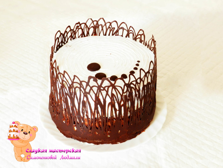 Украшение тортов кремом,шоколадом, фруктамиПервый торт без мастики,для своих делала.Первый опыт с шоколентой.В общем,кошмар....Надо учиться...Вот разрезик,шоколадный бисквит,мусс из из сливок с листиками мяты+шоколадный мусс