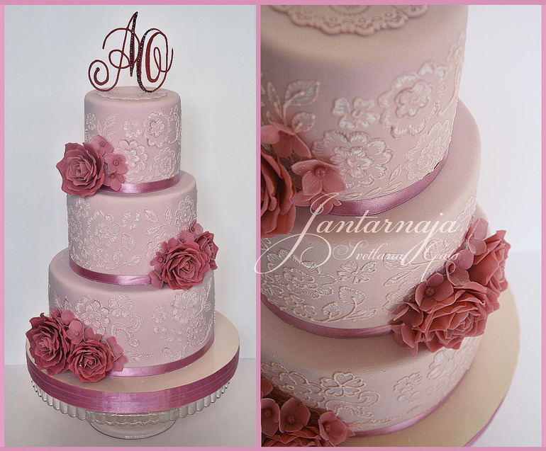 Торты свадебныеПервый розовый кружевной, вес 7 кг. Не так давно подружилась с айсингом, и теперь понимаю насколько же он может украсить торт. Не знаю, почему так сильно его боялась
