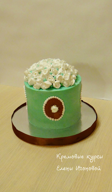 Состоялось еще одно занятие по кремовому декору "Времена года". В этот раз у нас весна, лето, зима и в стиле Тиффани. Много цветов, разные крема и техники.