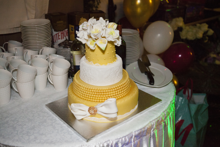 Добавляю фото тортика с торжества! Он выстоял, никуда "не поехал", не развалился! Вполне ровненький! С учетом того, что был собран без всевозможных "укреплений", подложек и т.д., т.е. просто наживую составлены все ярусы (пожелания невесты), все прошло хорошо!