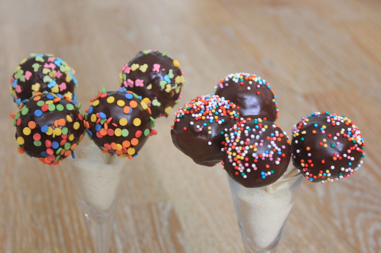 Капкейки и КейкпопсыДолго у меня почему-то не получались кейкпопсы.... то на палочках не держались, то ганаш не ложился....... и вот... получилось.... Первые!!! Может и кривенькие, но очень вкусный ( со слов детей))))