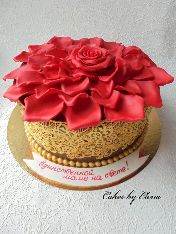 Спасибо Вам! Конечно грубые, но никак пока с этим не справлюсь... В погоне за насыщенным цветом намешала красный "топ. продукт" с "принцессой" для глянца — вот результат. А из цветочки у меня был только бейклз, который не окрашивался в такой интенсивный цвет... Все никак не подступлюсь к цветочной мастике, не знаю с чего начинать... наверное.... надо начинать с курсов).