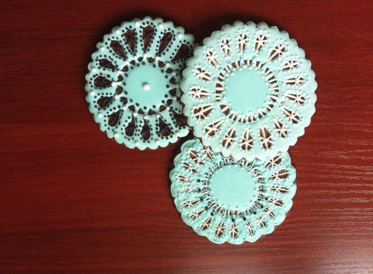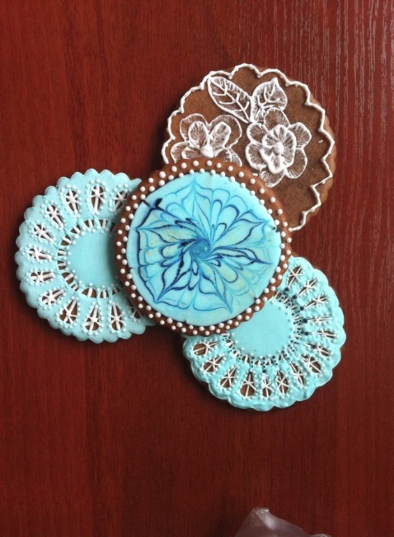 Спасибо, Олечка! Это я с покупным айсингом экспериментировала :)На кружевных делала заливку по четвертям, как Настя учила, а сплошную от центра делала.