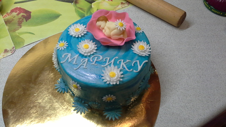 Спасибо! Да, желтый подошел бы, точно! Не сообразила) Белый не стала делать, потому что показалось, что много белого и так) а розовый... подумала, что торт-то сам голубой, так что сойдет))