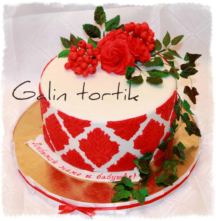 Торты для женщинМоя первая работа с молдом Дамаск и первая попытка сделать цветочную композицию...Внутри МД + карамельный крем + грецкий и лесной орех. Вес 2,8кг.
