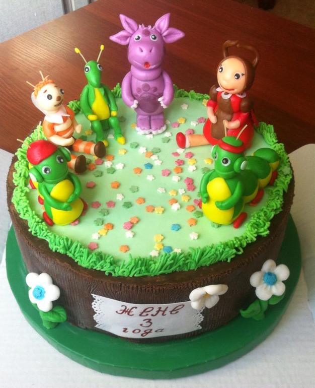 Торты детскиеВот такие персонажи :) Только сейчас, выкладывая фото, заметила, что слюнявчики Пупсеню и Вупсеню не сделала ))) В центре место под свечку :)