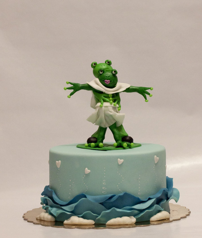 Торты свадебныеПищу от радости. Позвонила сокурсница и сказала, что друзья не дают спокойно сходить в ЗАГС, вынудили праздновать. Поэтому торту быть. Но надо знать мою сокурсницу! Человек с неуемной энергией, фантазией, чувством юмора. Сказала, что никаких лебедей, цветов и т.д. Помолчала и говорит: "На твое усмотрение, но с лягушками". Торт задумывался как иронический. Но как без роматизмУ?
