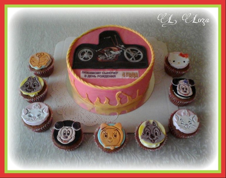 Торты детскиесладкий набор для юного любителя мототехники