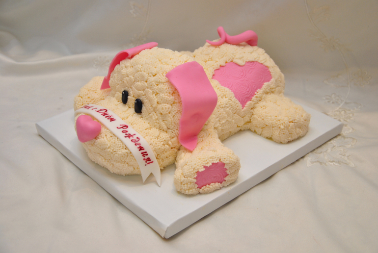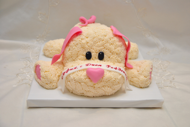 плюшевая собачка, 2,7 кг - ванильный бисквит, творожно-йогуртовый крем, клубника и банан