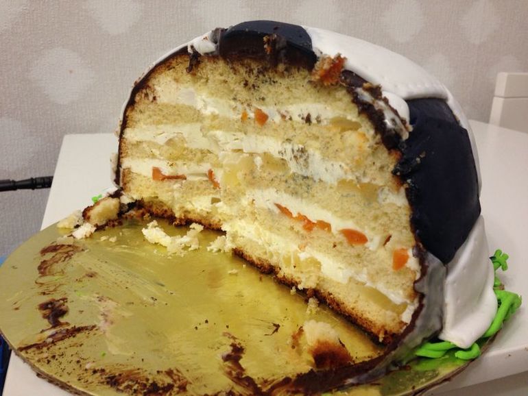 Спасибо,вот только пока фотосессия проходила в студии,именинник затискал торт,видно что мастика сьехала уже