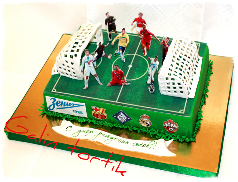 Торты детскиеПопросили в дизайне совместить любимые ФК и футболистов-кумиров именинника. Вот в итоге, что получилось...Внутри МД, карамельный крем, чернослив. Вес 2,9кг.