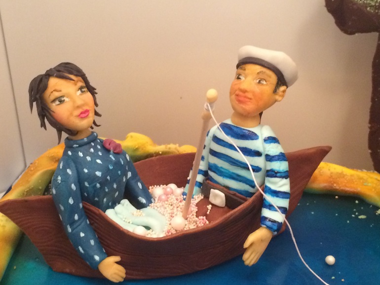 У людей принужденные абсолютно кукольные позы, лица тоже, что в сочетании с ополовиненностью их в лодке дает картину сломанных кукол в лодке и ощущение так себе. Это чисто на мой взгляд. Торту не хватает живости. Если приближаемся к реалистичный лепке, то особое внимание нужно уделить позе и мимике персонажей