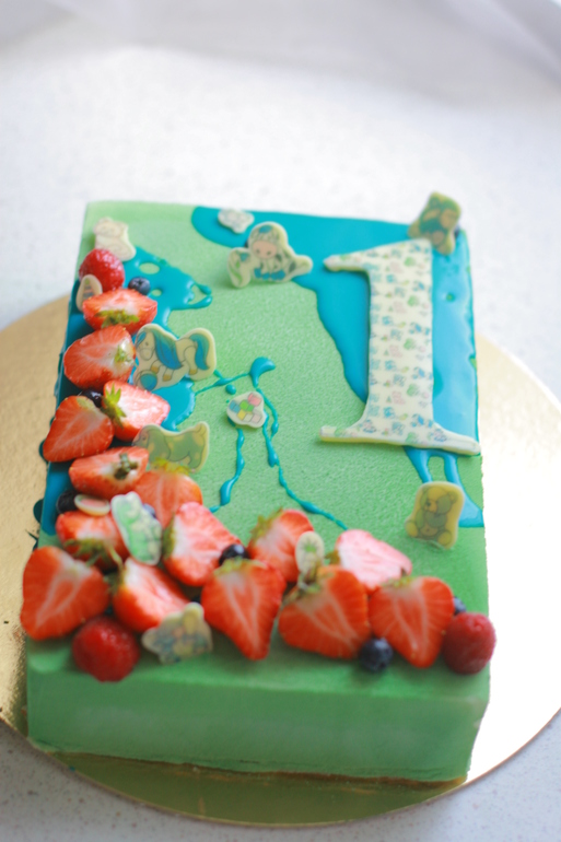 Декор как я очень полюбила в последнее время - велюр, глазурь, белый шоколад и ягоды.