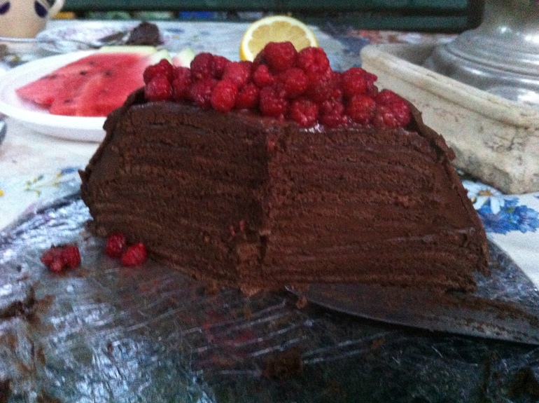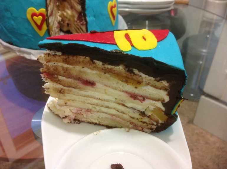 ну и на выравнивание, конечно, нужно отводить побольше времени. Бисквит пропитала не очень хорошо, крема сделала мало, да и край бисквита немного пережарила и не срезала)) Вобщем косяков хватило))
