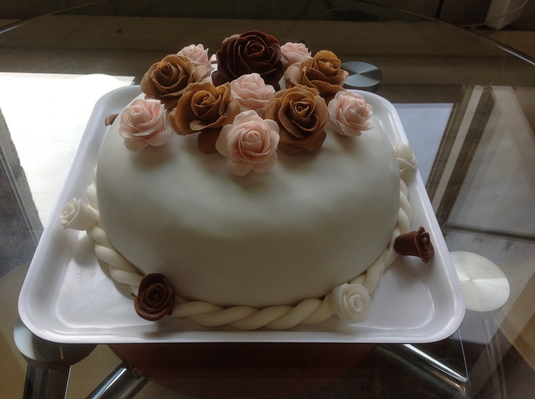 Второй торт на годовщину своей свадьбы. Лепили аппликацию вместе с мужем)) Кривенько немножко, но выравнивать старалась, как могла!)))
