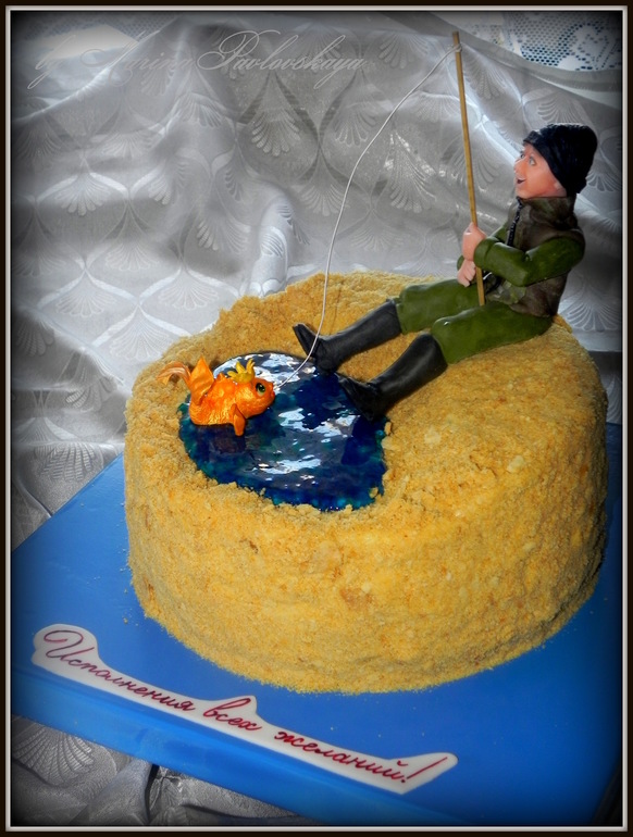 Торты для мужчинВот такой вот безмастичный наполеончик с мастичными фигурками.