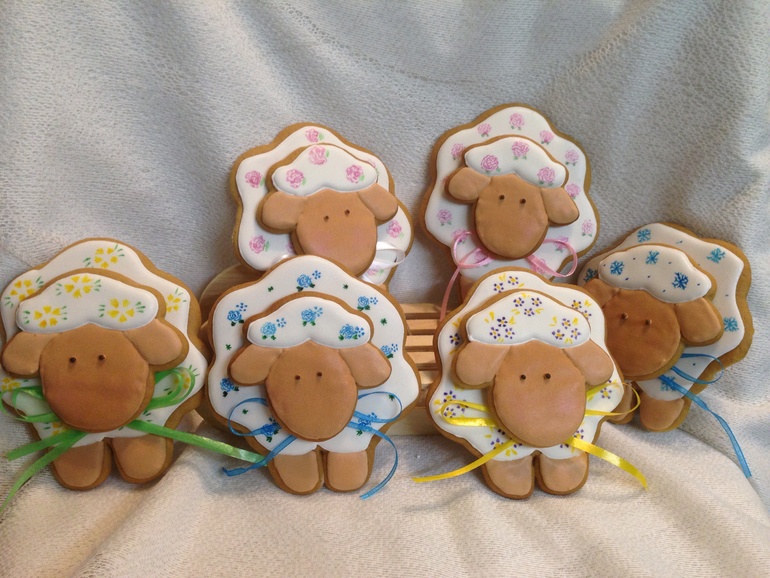 Овечки по 300 руб. Они большие — 13-14 см по длинной стороне, состоят из 2-х пряничков, красиво упакованы)