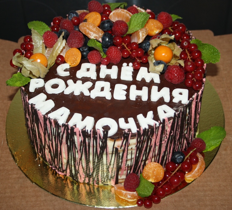 Украшение тортов кремом,шоколадом, фруктами2,5 кг, молочная девочка, сырный крем, вишня.