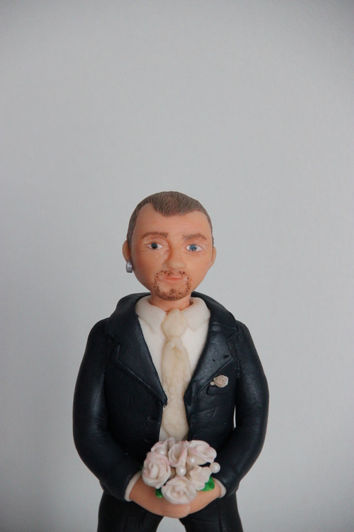 Фигурки и цветы из мастикиВот слепила моего первого настоящего мужчину))))))) Мужчина конечно не мой, хотя после того как я его лепила почти 10 часов стал как родной)))) Лепка не совсем портетная, я клиентку предупредила, что совсем похоже не получится, ей было главное соблюсти основные моменты: серьга в ухе, залысины, бородка, цвет глаз, цвет волос, костюм, цвет рубашки и галстука. Фигурка не на торт, а нужна была невесте для вручения "Оскара" жениху.