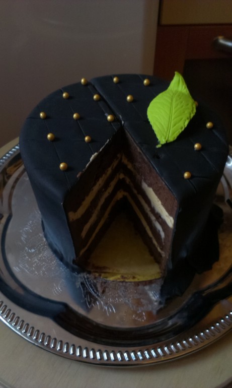 с мастикой ничего не вышло,не смогла обтянуть торт,ну по фото видно,это первая обтяжка,коржи тонко не получилось разрезать,хоть и подмораживала
