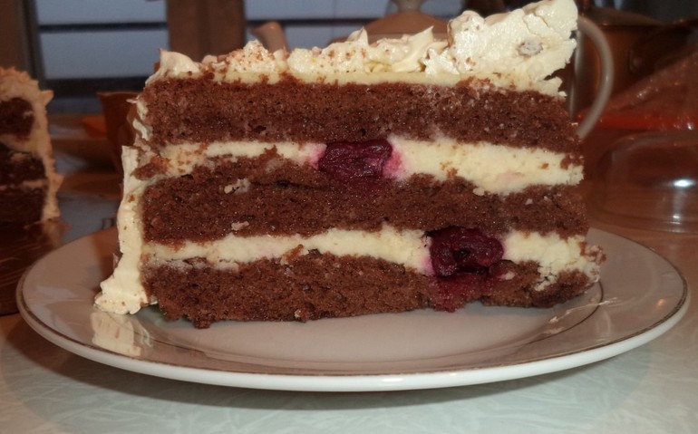 Проба пераМой первый шоколодный шифон ) ооочень я им довольна! Крем сливки-маскарпоне и вишня в сиропе. Вкусно всё получилось! НО....украшала Швейцарской сливочной меренгой, тоже впервые её делала, вернее получилась она у меня вот только со второго раза))