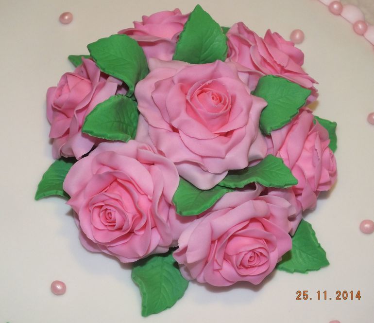 Покритикуйте, пожалуйста, тортик и розы. Розы лепила из Зеландии, т.к. другой мастики не было, намучилась с ними.