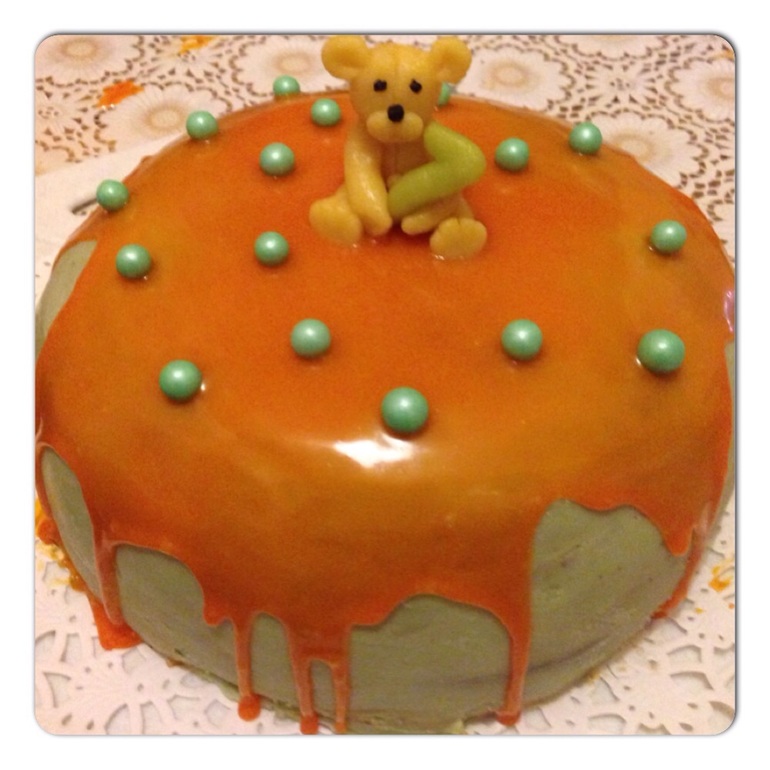 И последнее-тортик длЯ друга семьи: песочные коржи, крем на основе апельсинового шоколада, ганаш, глазурь из какао.