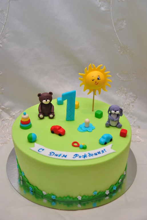 Следующие два тортика по случаю первого ДР мальчика, первый для домашнего чаепития, второй - большой уже на праздник