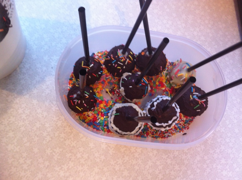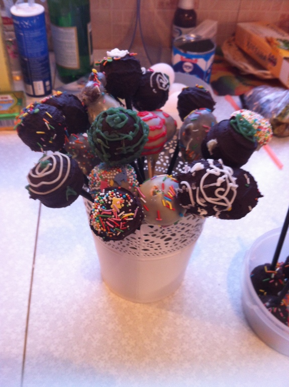 А с кейк попсов стекал шоколад,пришлось помучиться,хотя сами шарики очень хорошо слепились.