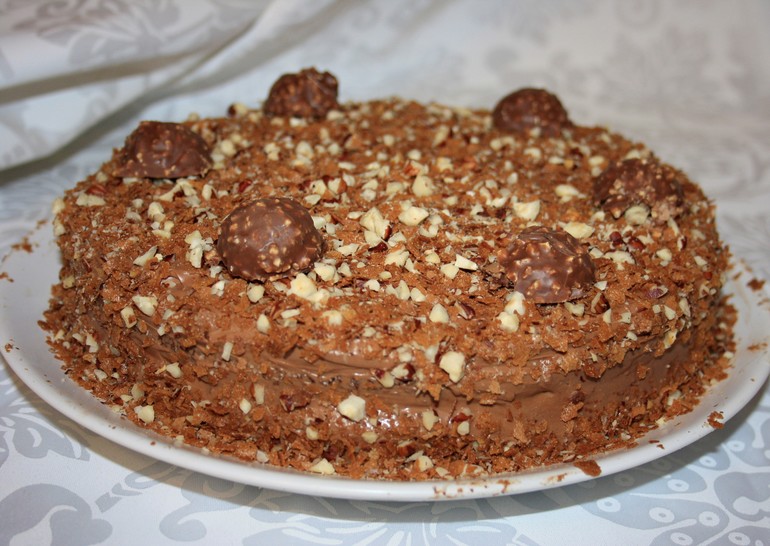 Торты для домашних и друзейПока заказов нет провожу пробы разных рецептов найденных в дебрях интернета, в этот раз выбор пал на шоколадный торт "Ferrero rocher". Готовила для семьи и неожиданно заваливших друзей мужа, больших сластен и знатоков моей кулинарии