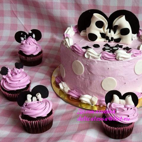 Молочная девочка, крем сметанный, домашняя карамель, покрыт мокрым безе, декор из мастики, почти 4 кг. Капкейки шоколадные с карамелью, шапочки из меренги.