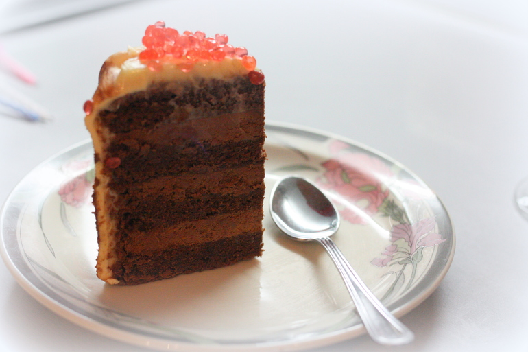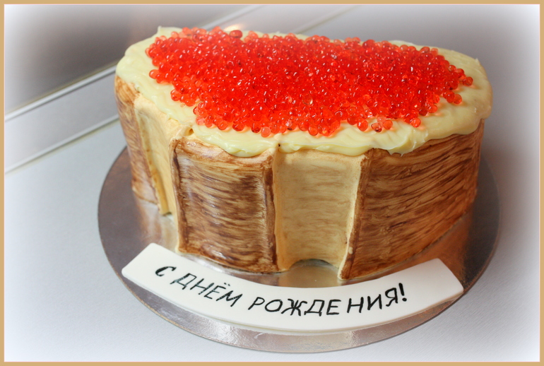 Сверху под "икрой" ганаш из белого шоколада (ох и намучилась я с ним, т.к. еще под мастику решила его использовать)