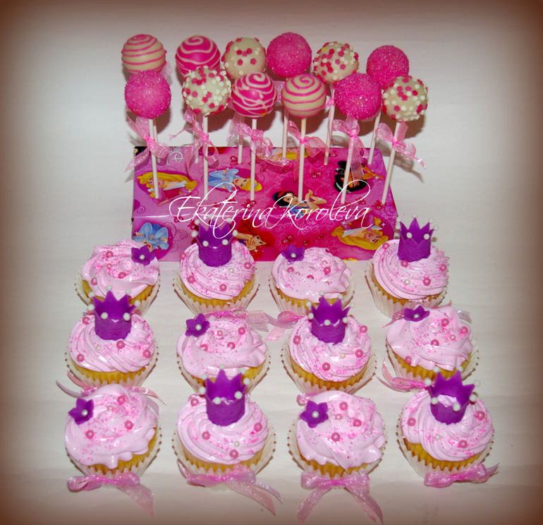 Капкейки и Кейкпопсыванильные капкейки, карамельный соус, швейцарская меренга, ванильные кейкпопсы с масляно-сгущеным кремом...