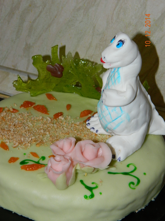 Спасибо, учту замечания, сама удивилась как у меня 2 фото высветилось. А тортик блинный, для малюсенькой семьи, поэтому и не стала высокий делать, дети все равно одну мастику слизывают