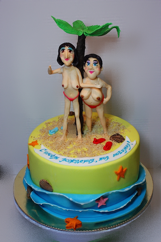Торты для женщинВ общем повеселю я вас сейчас немножко)) Торт для "хозяйки" косметического салона - так дама представилась мне по телефону))))) А точнее для ее подруги, которую та никак не может уговорить поехать на море. Клиентка попросила изобразить двух старушек в стрингах и топлес, с намеком на то, что, когда они выберутся на отдых, им будет уже ближе к 70-ти. Еще "хозяйка" просила непристойную надпись, но я уговорила не делать. С лепкой фигурок меня выручила Леночка Паскаль, за что очередное ей спасибо!